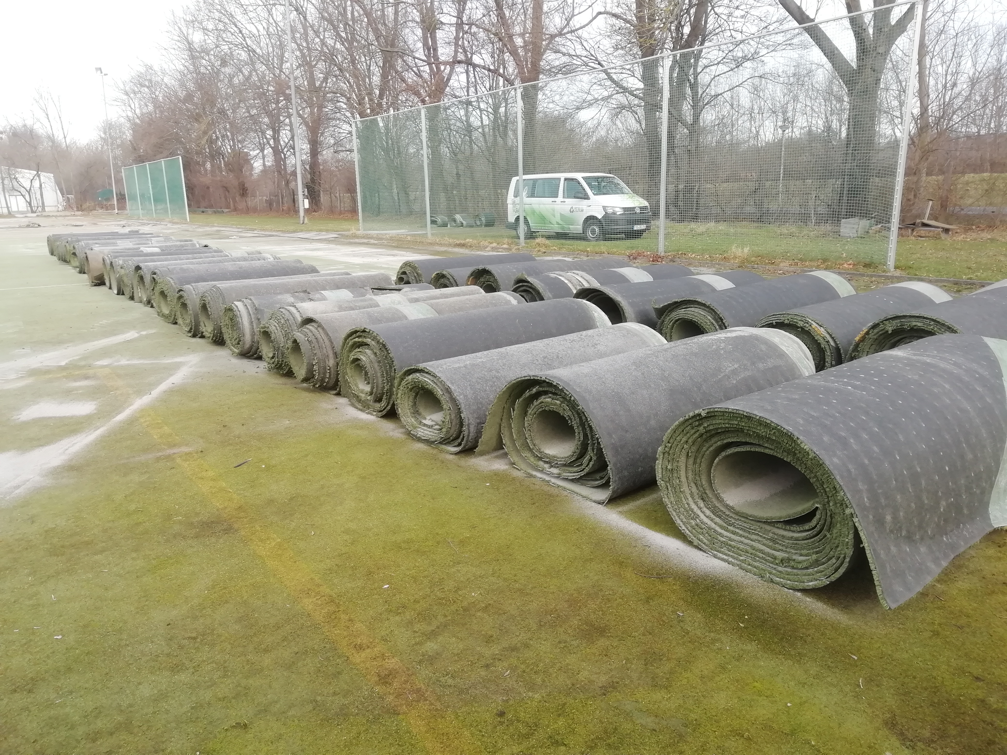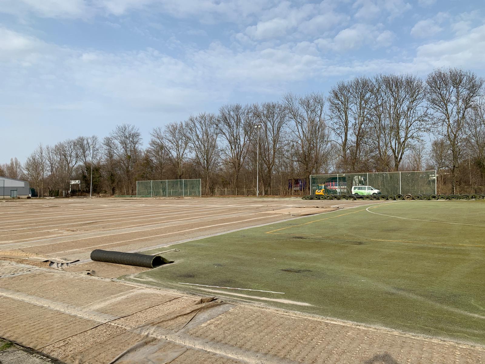 Wow, seit dem 01. März sind gerade einmal drei Tage vergangen und unser Platz ist bereits jetzt nicht mehr wiederzuerkennen. Der alte Belag ist nahezu komplett entfernt und verladen. Auch die Schutzabdeckung zwischen Kiesunterbau und Belag ist schon an vielen Stellen entfernt, so dass der Abbau wohl in dieser Woche erledigt ist. Vielen Dank an Karsten und Stefan für Fotos und Videos.